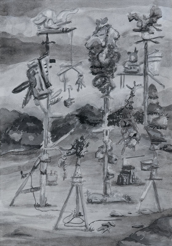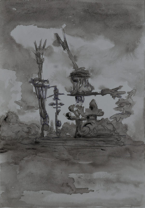 Jarek Piotrowski - Raw Fitting - Acrylic, oil and ink on paper - 36.4 x 25cm