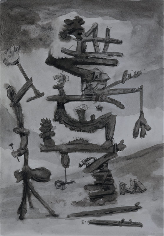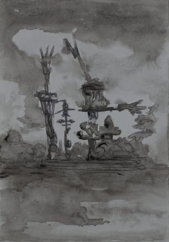 Jarek Piotrowski - Raw Fitting - Acrylic, oil and ink on paper - 36.4 x 25.7cm